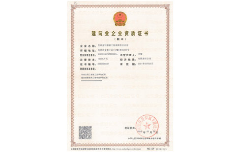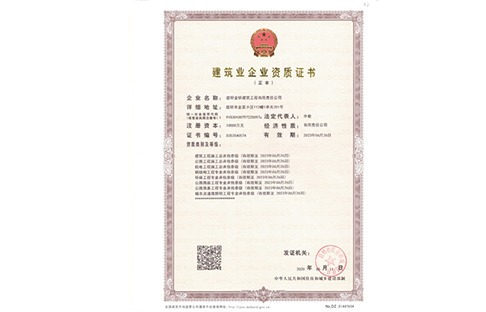 金鋅裝飾裝修一級資質證書正本
