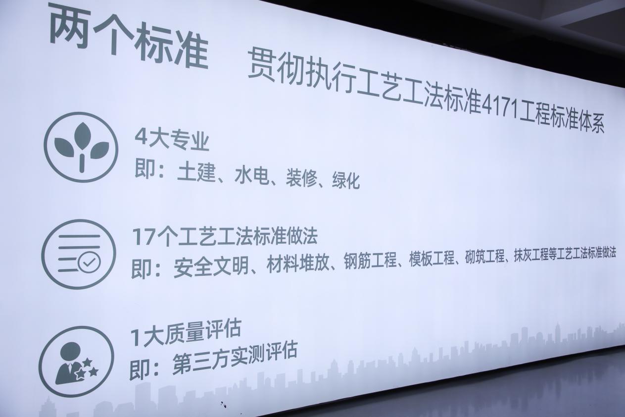 俊發(fā)建設(shè)以俊發(fā)工藝工法標(biāo)準(zhǔn)4171標(biāo)準(zhǔn)工程體系(即“土建、水電、裝修、綠化”4大專業(yè)、“安全文明、鋼筋工程、模板工程……”等17項(xiàng)工藝工法標(biāo)準(zhǔn)施工流程、“第三方實(shí)測評估”1大質(zhì)量評估)為基點(diǎn),不斷打造并完善全流程、全維度的質(zhì)量管控體系,完善工程管理技術(shù)和管理標(biāo)準(zhǔn),實(shí)現(xiàn)工程質(zhì)量的均好發(fā)展。