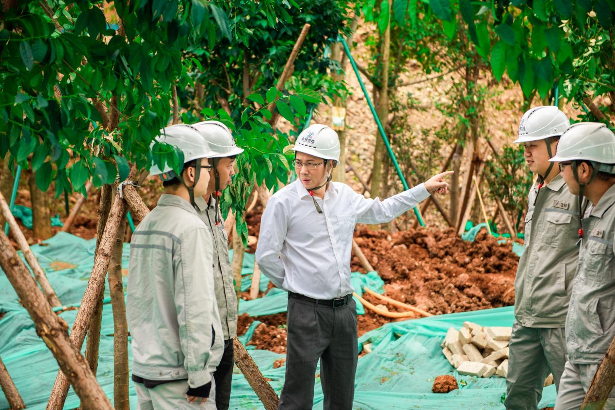 除了種植困難,天氣原因也給項(xiàng)目進(jìn)度造成了阻礙。7、8月份為昆明雨季,而遇到雨天,修復(fù)進(jìn)程只能停滯,為了保工期團(tuán)隊(duì)只能在晚上雨停之后加班工作。由于前期在分臺(tái)過程中產(chǎn)生的泥土及碎石在下雨天滑落系數(shù)增大,造成項(xiàng)目施工進(jìn)度延緩及安全風(fēng)險(xiǎn)增加。在這種情況下,團(tuán)隊(duì)“以咬定青山不放松”的態(tài)度,堅(jiān)持復(fù)綠工作不動(dòng)搖,通宵搶工期、常駐工地已經(jīng)成為團(tuán)隊(duì)工作人員的日常。